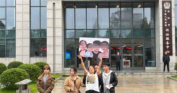 9月23日上午,备受关注的“一家三人被醉驾司机超速追尾致身亡案”在信阳市中级人民法院开庭审理。开庭当日一早,信阳当地天气较为寒冷,下着小雨,受害者家属代女士坚持身穿印有逝去亲人照片的短袖,高举着孩子的照片,从居住的酒店走向法院,参加庭审。临近法院门口时,代女士情绪崩溃,在街上大声诉说着案情,几乎无力站立,其家人搀扶着才勉强走进了法院。她表示,自己昨晚没睡好,今天开庭是她等了一年的日子。