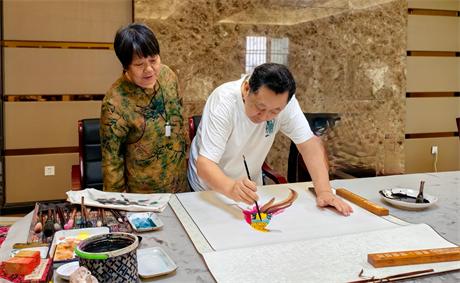 在画室,他们共同度过无数个日夜。清晨的微光透过木格窗,洒在宣纸上,也洒在他们创作的身影上。有时,窗外传来几声鸟鸣,为这安静的画室增添了几分生机。对面的赵桂香用纤细的指尖揉搓着颜料,将钛白与曙红在青花碟中交融,调配出如朝霞般绚烂的胭脂色,为笔下的牡丹增添娇艳。她专注的神情,仿佛整个世界只剩下她和眼前的画作。